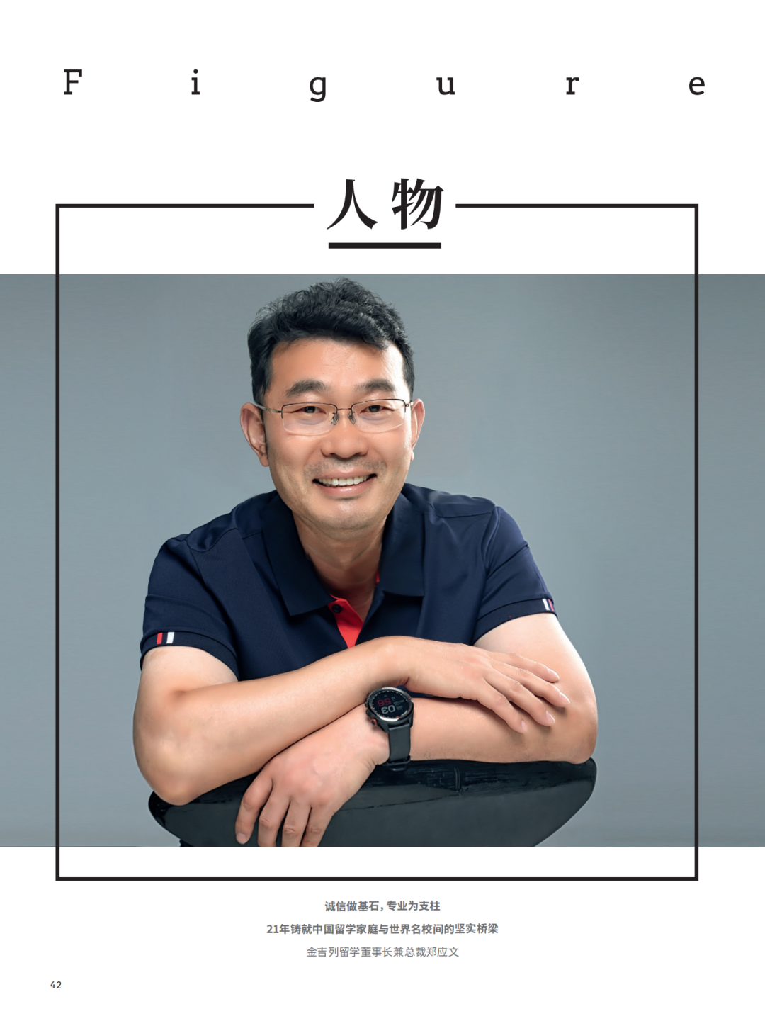 北京刚刚经历了几场大雨,暂时的凉爽让人们终于能在炎炎夏日中得到片刻喘息。6月,在一个晴朗无云的午后,《留学》杂志记者与金吉列留学董事长兼总裁郑应文进行了面对面交流,“我刚刚结束了上午的会议,就赶来这里了。”采访之初郑应文这样说道,如师长般亲切的语气体现出作为山东人的好客与热情。在接下来的采访之中,郑应文以既风趣幽默又专业严谨的谈话方式向《留学》娓娓道来了他在金吉列留学工作21年来的点点滴滴,展开了一幅行业执牛耳者描绘的宽广画卷。