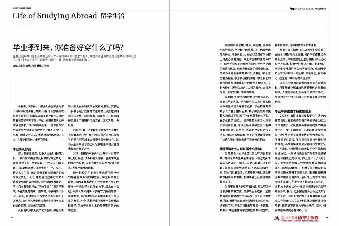 毕业季,该穿什么?很多人会在毕业时留下可以回顾的影像。其实,不同场合穿哪类衣服是有要求的,拍摄毕业典礼照片和个人照时的着装要求有所不同。不过,所谓的要求也并非硬性要求。2022年的毕业季,一位来自西安的留学生在加拿大高校的毕业典礼上穿上了汉服,通过这种方式,表达对家乡的思念。其实,只要穿搭得体,就无可厚非。