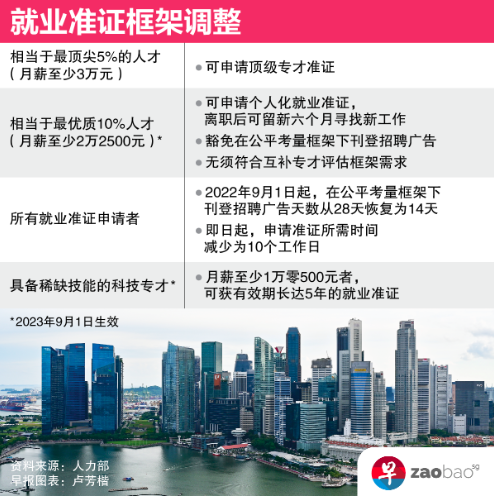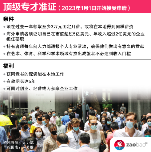 当地时间8月29日,新加坡人力部官网宣布了新的工作签证规定。新规包括对月收入不低于3万新元的外籍人士发放5年期工作签证“顶级专才准证”(Overseas Networks & Expertise Pass)简称ONE Pass。允许其同时创办、运营或供职于多家公司,并允许其配偶获得工作资格。未达薪资标准的艺术文化、体育、科学技术、学术研究领域的优秀候选人,也可申请获得前述工作签证。此类签证将于2023年1月1日起开放申请。