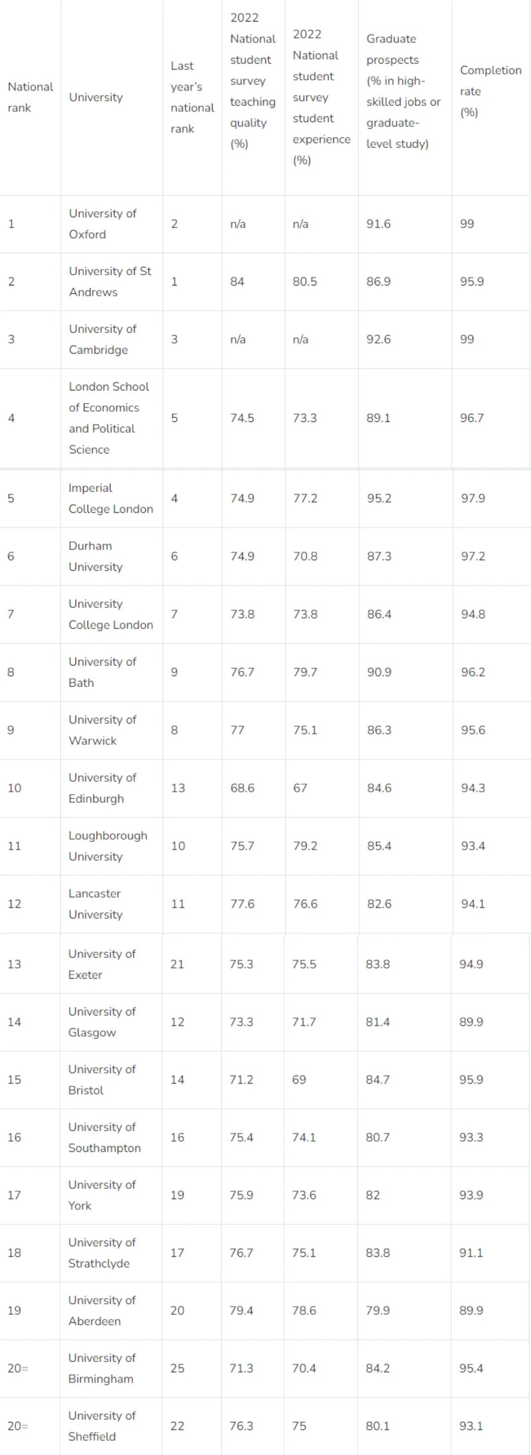 英国一直是最热门的留学目的国之一,近两年的热度甚至反超美国留学。近日,英国The Times&The Sunday Times(《泰晤士报》与《星期日泰晤士报》)发布了 Times 2023年英国大学最新排名(Good University Guide 2023)。