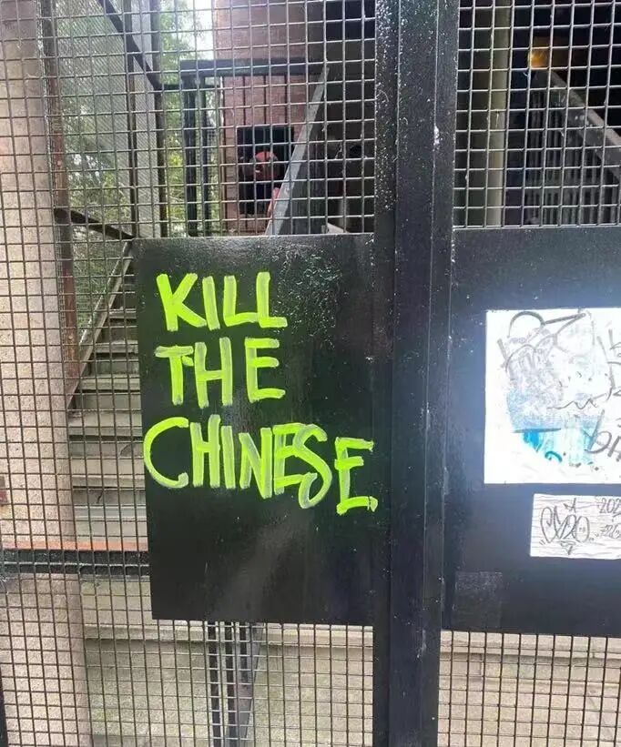 涂鸦清晰的写着“KILL THE CHINESE(杀死中国人)”的字样,并且还是用荧光色喷漆涂在公共场合,引起留学生的愤怒。事件发生后已经有同学陆陆续续向相关部门提交举报,格拉斯哥大学的中国留学生立即发邮件说明事件的严重性,并要求校方对恶劣事件做出处理。