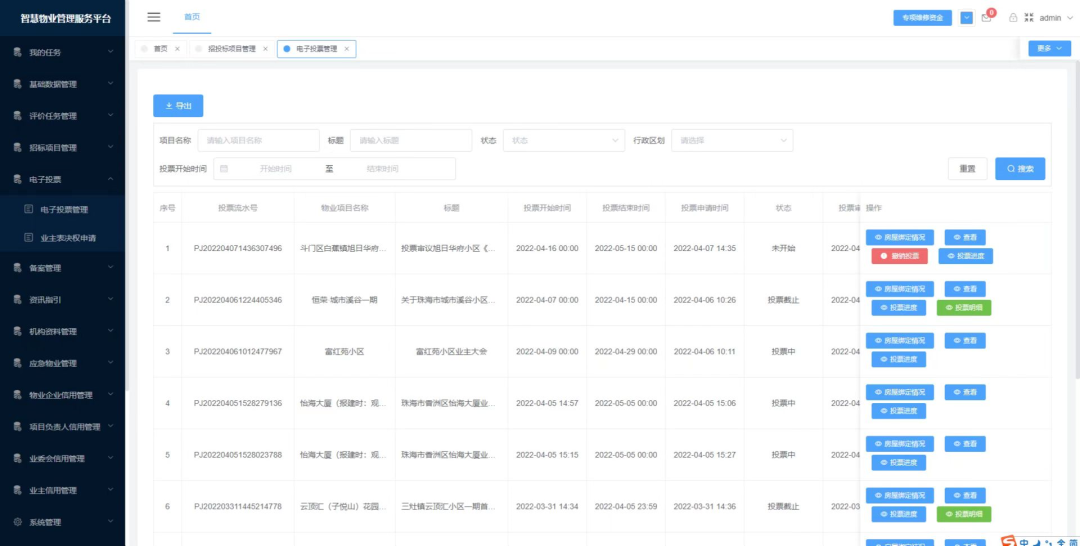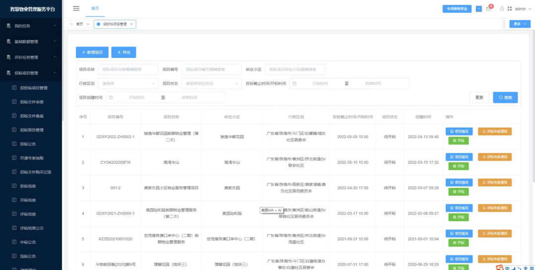 物业服务招投标系统从招标、投标、开标、评标、中标全过程规范物业服务行业招投标。以数字化手段促进过程信息透明化和公平公正,保护小区居民的合法权益。