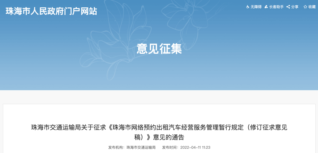 为更好地满足社会公众多样化出行需求,规范网络预约出租汽车经营服务行为,保障运营安全和乘客合法权益,近日,珠海市交通运输局发布《珠海市网络预约出租汽车经营服务管理暂行规定(修订征求意见稿)》(以下简称《意见稿》)。