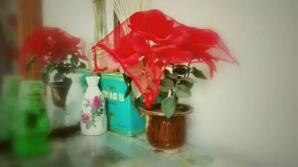 “小白鞋”参加文艺汇演赢得的奖品,一盆假花。图/澎湃新闻