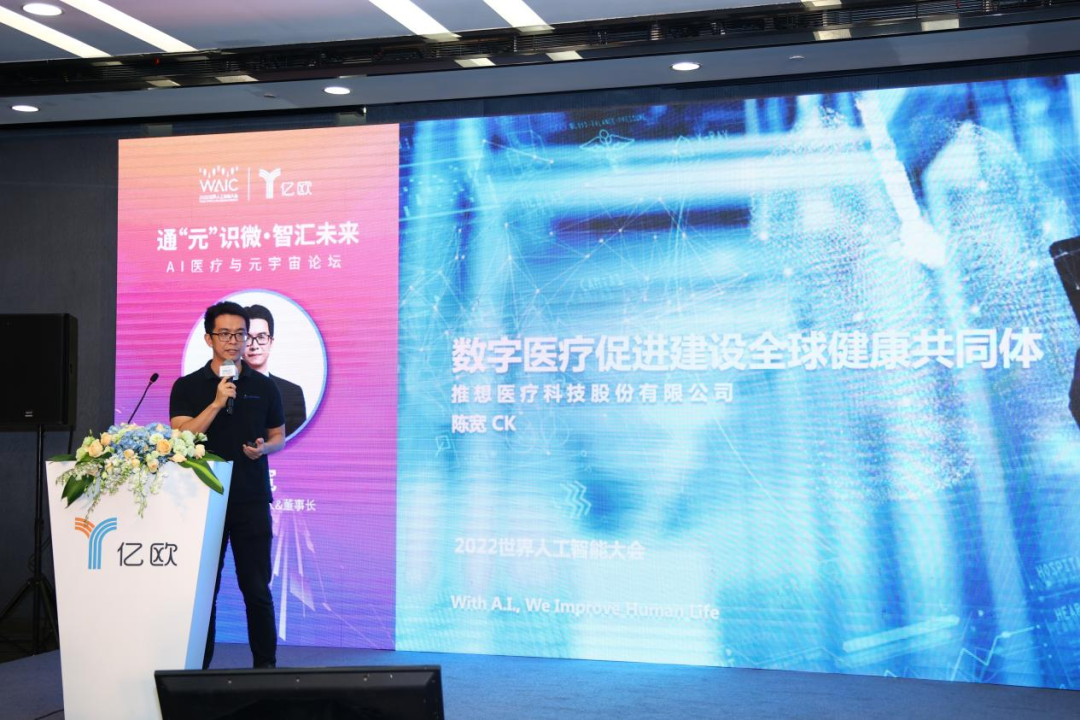 值此之际,由世界人工智能大会组委会办公室指导、亿欧主办,中国信息通信研究院华东分院、上海市人工智能行业协会、上海交通大学产业经济研中心支持的2022世界人工智能大会“AI医疗与元宇宙论坛”,于9月3日下午通过“线上+线下”两种方式隆重举办。