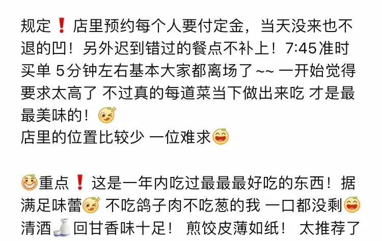 譬如沪上某人均2700元的日料店规定,客人迟到的话错过的餐点不会再补上,而且吃到19:45要准时买单离场,因为20:00店铺的下一批客人就要来了。