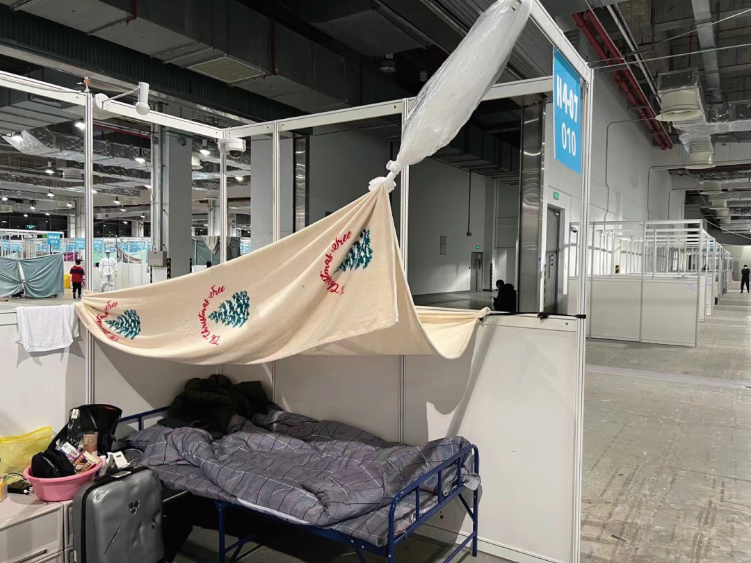 3月中旬的上海,有一些零星的疫情,但还不严重。我从来没想到疫情会临到我头上。周末我和朋友们一起出去跑步、玩滑板,后来我又去菜市场买了些菜,做了一道鲷鱼蚕豆炊饭,记录了菜谱和烹饪过程,写了篇文章发在了公众号“home bistro”上。3月16号我的小区做了全员核酸,很快我被告知,结果异常。做了一次复核后,我被通知需要转运去医院治疗。我很惊讶,不过觉得现在病毒毒性低,我应该很快就能出院。准备了一些随身衣物、一个iPad,我就在家等着被接走。3月19号的晚上,我上了救护车后才知道我要去嘉定区的瑞金医院北院(以下简称瑞金北)隔离。十天后,我又被转移到了世博源方舱。前天(4月7号),已经是我被隔离的第二十天。我没有任何症状,只在瑞金北以打卡的心情喝了几包连花清瘟冲剂——因为我从来不吃感冒药,好奇这是什么味道。现在想起来,我很可能是在菜市场被感染的。我是个美食博主,这也算是工伤了。自从转到方舱后,我变得有些焦虑。现在我平静了。既然没办法很快出舱,那就顺其自然吧。我的方舱在世博源地下一层,有一千多号人,如同一个小城镇。世博源在浦东新区,是上海为了2010年世博会而建的。我很难判断这个方舱之前的用处,也许是个停车场。方舱的伙食不错,医务人员态度也好。有一次给一位护士帮忙的时候,我问护士这里有多少志愿者,回答是没有,全部是医院职工,他们是方舱最辛苦的人。他们的防护服一穿上就很难上厕所,面罩上都是气雾,经常看到累得坐在凳子上打盹儿的医护。我有次在护士台多呆了会,就听到步话机里医护之间的联系,有人心脏不舒服、有人拉肚子、有人咳嗽要开药,各种状况很多。在方舱里,很大的问题是睡眠。方舱里24小时灯火通明,从来不熄灯,这实在很影响睡眠。我找护士抗议,后来护士发我一条印着圣诞树的薄毯子。我用垃圾袋做成绳子,把毯子的四个边角和床两边的栏杆系起来,做成一个“天幕”。晚上睡觉时,口罩可以当眼罩遮住眼睛。这样每天晚上我勉强可以睡五个半小时。