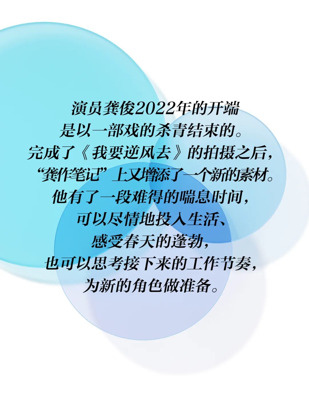 龚俊认真地分析着这个角色,像是在做一种业务上的复盘,正是把这些人物关系都吃透了,他才更理解了一定要“收着演”的逻辑链条。他觉得自己在韩烨身上获得了成长——一方面是他从未尝试过的克制的表演方法;另一方面是角色身上的自制力和心系天下的胸襟。摩天轮从高到低的流动,与其说是一种降落,不如看作是新的开始。龚俊知道,当外界的喧嚣逐渐退去,只有踏踏实实地演戏,将真情赋予在作品当中,才是真实且长久的留存。娱乐圈不缺年少成名的样本,但这并不属于龚俊。那个默默努力的故事,被反复提起。从早年在上海拍广告,到为了演员梦的“北漂”生涯,其中的任何细节都不被放过。那是一段在他人看来有些辛苦的时光,但龚俊却不这么认为。在他看来,跑组时的奔波,试戏后的石沉大海,没有收入时的焦虑,都是不可缺少的经历的一部分,人生没有白走的路,每一步都算数。龚俊深知,表演的路上没有一蹴而就,实践是最好的老师,演得多了,见得多了,才能渐渐知道什么是好的表演。正是在这样一次次的磨炼当中,才有了让他崭露头角的《醉玲珑》和《绝世千金》;也正是有了十几部作品的加身,才能驾驭《沉睡花园》沉稳睿智的林深。曾经的龚俊,会在试戏之前做足准备,在现场按部就班地完成台词,但遇到那些突然变动的临场发挥,却容易慌了神。那是一个紧张又用力的阶段,他在进步,但他也知道“完成角色”和“成为那个人”中间还有着很大的距离,他需要再度攀升。后来,一位老师告诉他,无论是演戏还是唱歌,松弛下来,反而更随意和自如。彼时的他知其然不知其所以然,但把这个方法记在了心里。渐渐地,他找到了些感觉,理解了“真的演戏应该是根据对手演员的表演给出真实的反应”,而不是那些提前设计的步骤。在前不久杀青的《我要逆风去》中,龚俊找到了那种放松的感觉。这是一部讲述国潮崛起的现实主义商业戏,很多与年轻人相关的话题和社会热点都有呈现。龚俊饰演的男主角徐斯是一个年轻有为的投资人,曾经一个人在香港奋斗,在商业上有自己非常独特的见解。他回到内地后,机缘巧合之下与女主角江湖(钟楚曦饰)并肩作战,振兴本土品牌。在剧中,他跟几个“老戏骨”都有对手戏。张晨光、刘佩琦每个人都有着不同的风格,但在镜头前,他们的共同特点都是放松。龚俊喜欢观察他们的状态——看不出太明显的表演痕迹,但站在那里给出的状态,就是对的。印象最深的一次,是跟张晨光的一场戏。徐斯从洗手间出来,遇到张晨光饰演的裴志远,人物之间有一点矛盾冲突。剧本中并没有具体地定每个动作,也没有日常生活中口语化的台词,戏剧张力全靠演员的发挥。龚俊说,张晨光给出了很多即兴的细节,“比如徐斯的西装脏了,他想帮我擦,我表现得有点不耐烦。这个人物平时是挺讲究的人,这种不耐烦就是一种真实的状态”。这并非提前设计所能达到的效果,而是两个演员的配合,“他会随机给出一些反应,你得接得住”。“有的时候演戏就是得放松,学学老戏骨,不一定完全按照本子走。”龚俊通过戏里面的交流,终于理解了何为真正的放松。对于徐斯这样一个人物,放松下来能让龚俊更好地诠释角色的性格。“狠”“渣苏”“腹黑”是他给人物的标签。“他这个人是反着来的,不仅是在感情上,还表现在他的商业头脑上。”徐斯不按常理出牌,有着商业野心,但最终实现了理想价值的转变——这些都和龚俊以往的角色有所不同,他需要适应这种“反着来”,越紧张反而越别扭,放开了,气场就出来了。 龚俊认真地讲起自己的分析:“腹黑可以形容他,但不是简单意义上的腹黑。他为了达成商业上的成就,一心寻找企业的商业价值。他最开始的价值观,是通过快速收购让一家公司扩大,增加竞争力。但在遇到女主之后,他渐渐发现,投资人要扶持国内企业的成长,让他们实现国潮崛起,逆风翻盘。他是一种价值观上的改变。”那一刻,仿佛看到徐斯已经在他的眼睛里闪烁。但说完这些,龚俊被自己逗笑了,回过神来,“哎呀,说太多了,还是等着看剧吧”。<<向左滑动