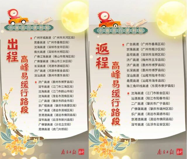 广东省交通厅表示,中秋三天假期,公众大多选择就地过节,长途及跨省出行需求相对不大,省内周边游、本地游将是主要出行方式。