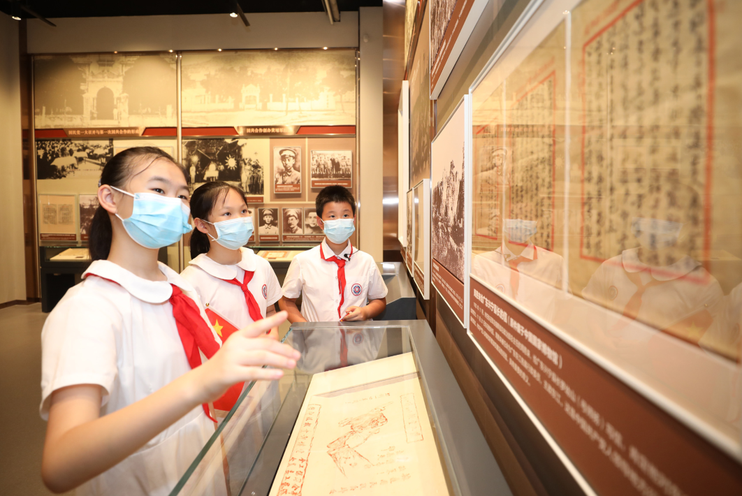今天,孩子们站在中共三大会址纪念馆里,仿佛能看到当年长条桌边的年轻哥哥、姐姐们,感受他们坚定的理想信念,铭记共产党人的责任与担当,感悟革命信仰的力量。
