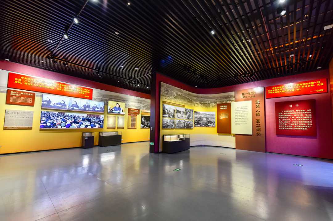 “大潮起珠江——广东改革开放40周年展览”位于深圳改革开放展览馆内,面积6300平方米,通过“敢为人先 勇立潮头”“增创优势 砥砺前行”和“走在前列 当好窗口”三个部分,全面展示广东改革开放40年的峥嵘岁月,生动再现广东改革开放重大决策、重大突破的壮阔历程,深入反映改革开放40年来广东经济社会发展的丰硕成果。