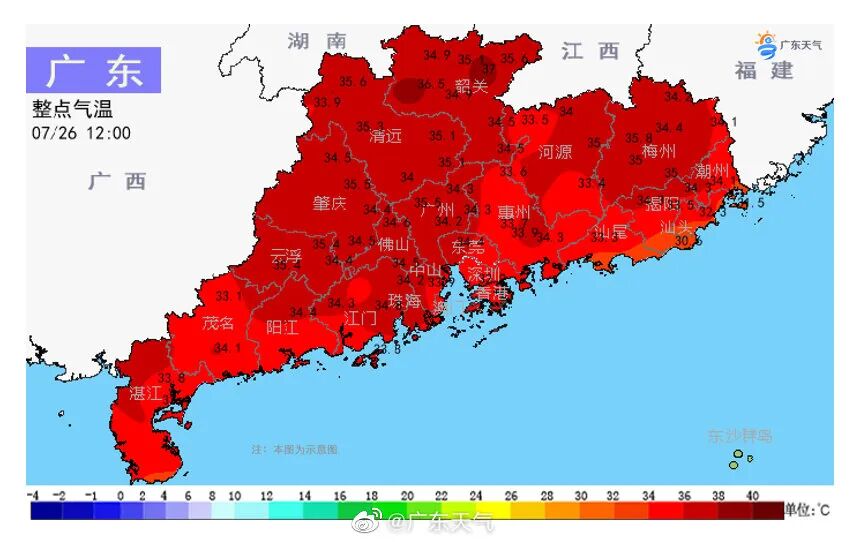 受强盛的副热带高压脊控制,广东高温炎热天气持续。