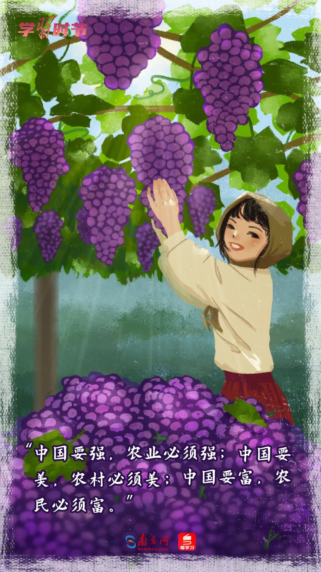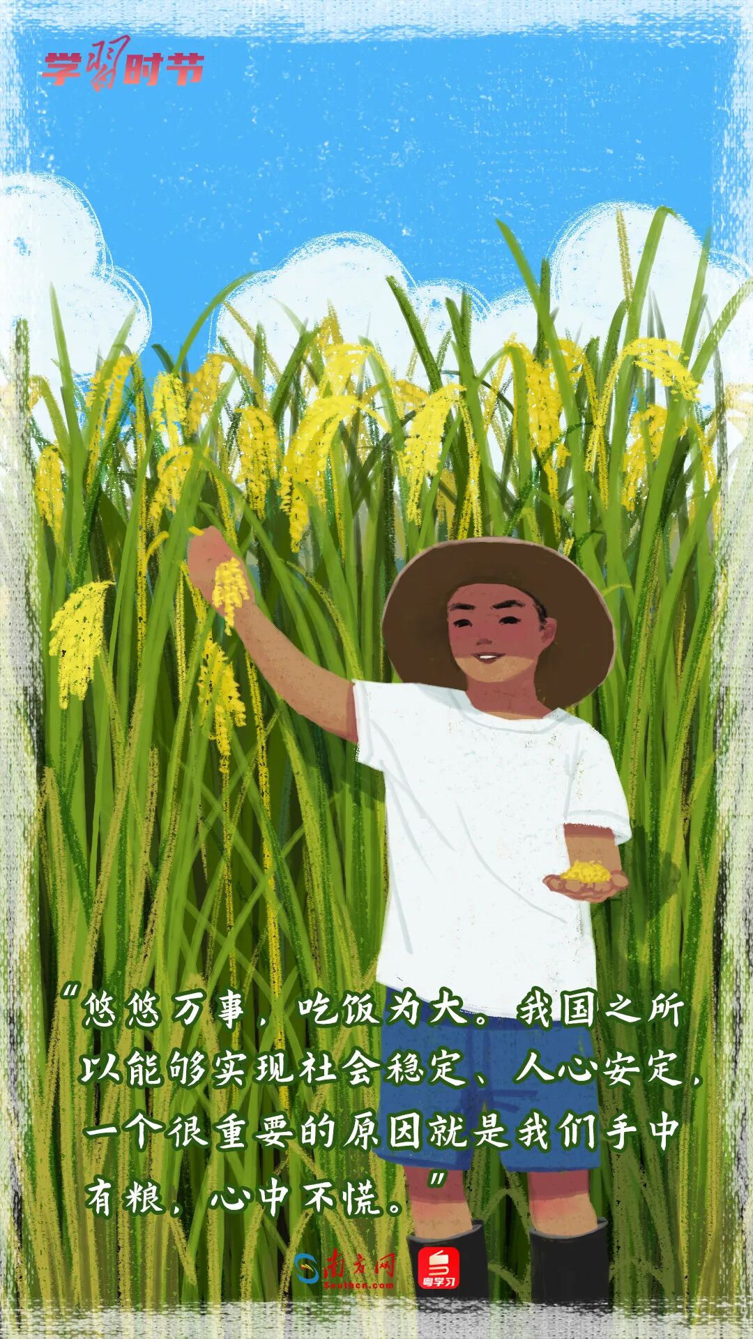 9月23日,是第五个中国农民丰收节。今年,粮食稳产增产,丰收的成绩单提气喜人,为农业发展大局奠定了坚实的基础,为这个丰收节写下了生动注脚。关于丰收,习近平总书记念兹在兹。在田间地头、在农家小院、在黄土炕边,习近平总书记与农民拉家常,一次次殷殷嘱托,一句句暖心问候,体现了习近平总书记对“三农”工作的高度重视,对广大农民的深切关怀。在这个喜庆的日子,我们认真学习习近平总书记关于“三农”工作的重要论述,结合大江南北多地的丰收场景,推出一组丰收节的手绘海报,一起重温这些经典的暖心话语。
