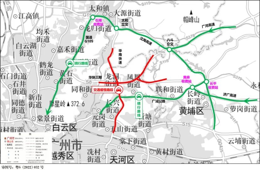 为避开春岗立交段行车缓慢,建议粤东地区返程旅客通过沈海高速(北二环)长平收费站转广汕公路进入广州市区,或者进入广佛肇高速凤凰山段黄麻收费站转广汕公路进入市区。