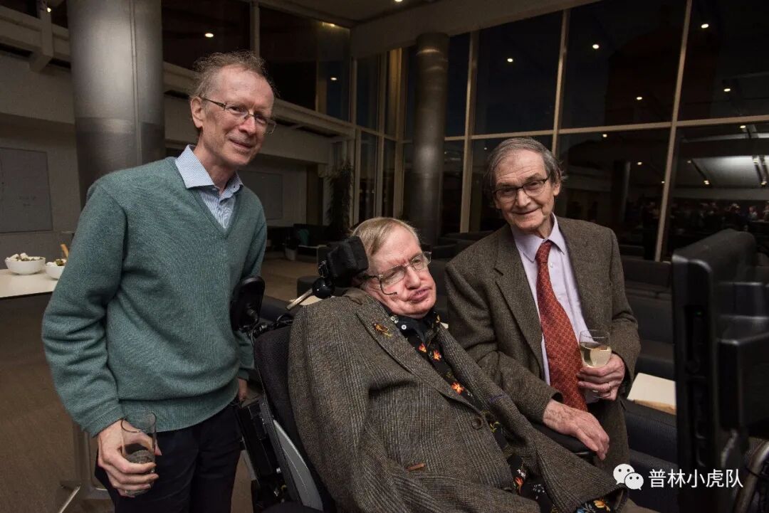 左起:怀尔斯、霍金、彭罗斯。彭罗斯获诺贝尔物理学奖后,牛津大学官方发布此照片,但把怀尔斯截掉了。(图源:牛津大学)