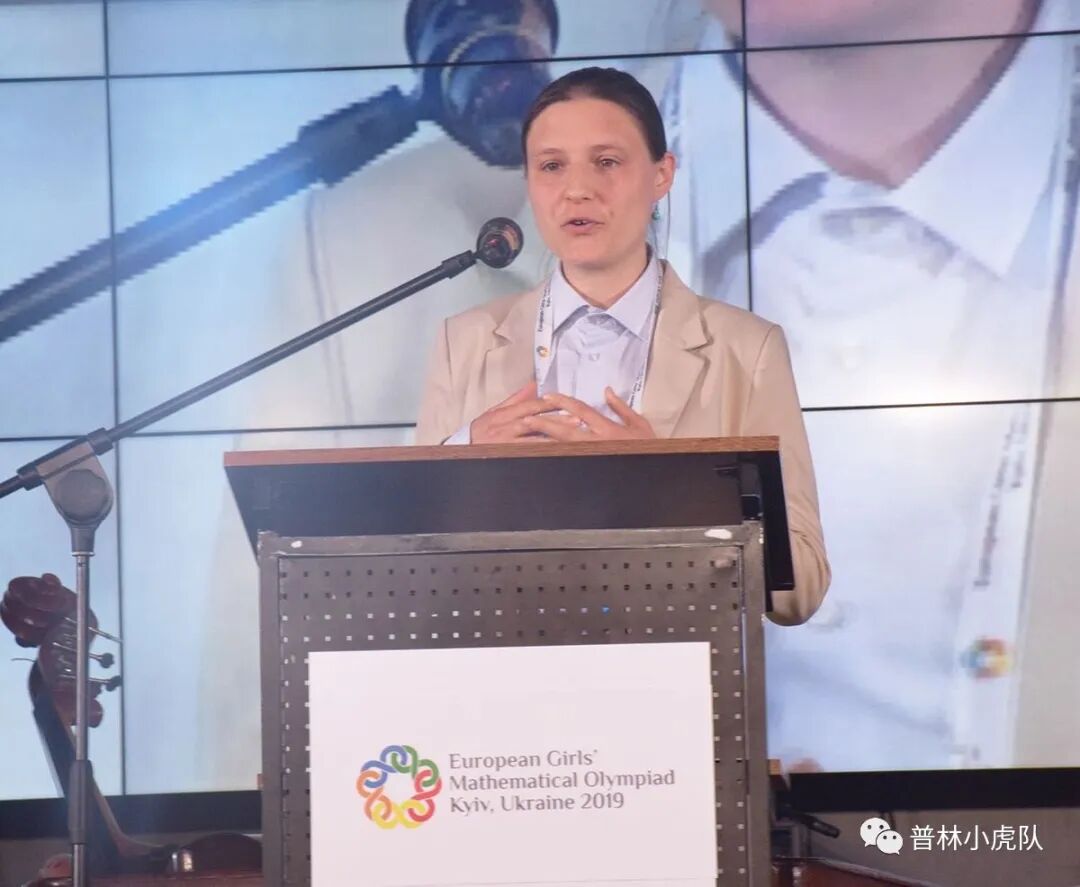 Maryna Viazovska在基辅举办的2019年欧洲女子数学奥林匹克上发表讲话