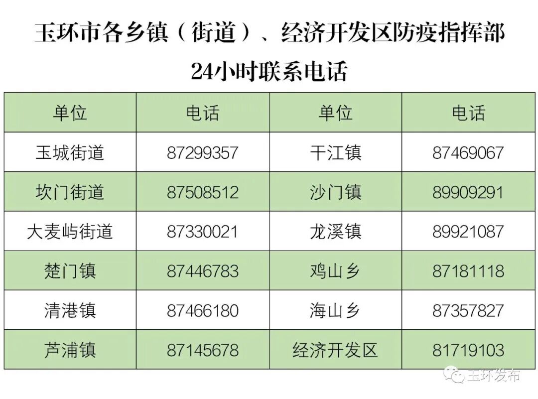 (二)检测时请主动出示健康码或身份证件,全程佩戴口罩,有序排队,保持1米以上距离,主动配合,听从工作人员指挥,不交谈、不聚集,按要求进出场地。(三)健康码异常人员到发热门诊或采样点设立的临时隔离点进行检测。有发热、咳嗽、腹泻、乏力等症状的,暂不参加本次核酸检测,第一时间向所在村(社区)报备,并在做好个人防护的前提下,及时前往就近发热门诊就诊,避免乘坐公共交通工具。(四)请各乡镇(街道)、玉环经济开发区按照不漏一人的目标要求,发挥网格清底作用,实现全员核酸检测。(五)目前我市没有新冠肺炎确诊病例,没有无症状感染者。请广大市民不要恐慌,主动配合疫情防控工作,自觉遵守法律法规,不造谣、不信谣、不传谣。疫情防控,人人有责。为了您和全市人民群众的健康安全,请各位市民朋友支持配合,感谢您的理解。
