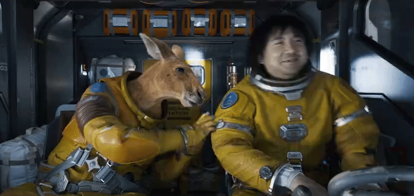就在这时,他在仓库里意外地发现,原来自己并不是独身一人。还有一只,呃,暴躁的袋鼠也被落在了月球上。