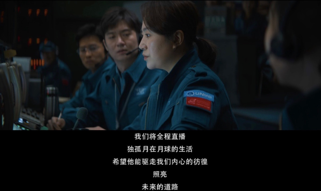 但在后期建立了地月通讯,双方确定了返航计划后,那一段拼接镜头爆发的荷尔蒙火花,精彩程度完全不亚于对手戏!工程师出身的独孤月和指挥长马蓝星,在技术上天衣无缝的默契配合,共同举起酒杯遥祝独孤月顺利返航时的从容,俨然是一对棋逢对手的强强联合。这还不好嗑吗?
