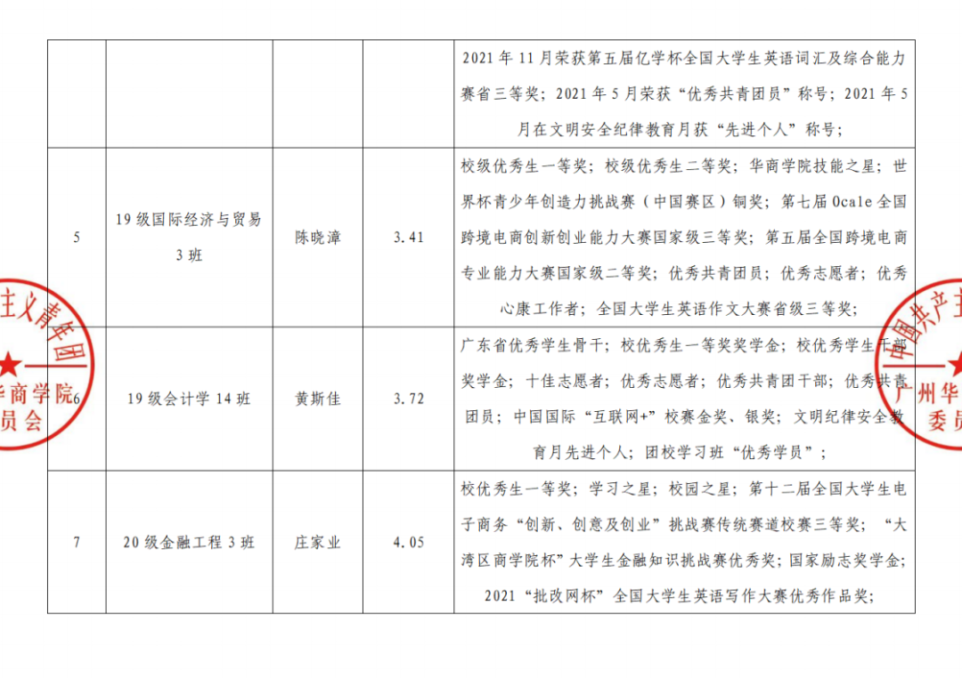 共青团广州华商学院委员会关于2021年度“中国电信奖学金”校内评议会候选名单的公示