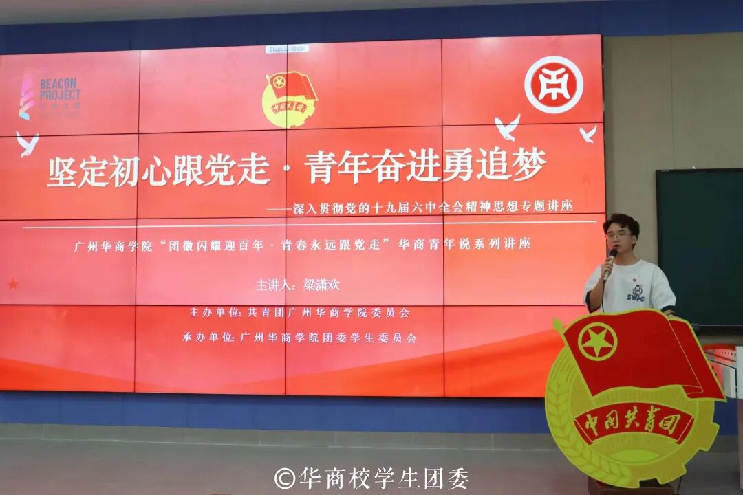 回望百年,青春向党。每一次搏击风浪的天空下,都激荡着青春的旋律;每一个勇毅前行的足迹中,都饱含着奋斗的艰辛。时代的责任赋予青年,时代的光荣属于青年。为深入学习贯彻习近平总书记关于青年工作的重要论述,以青春之我、奋斗之我,一心向党,4月27日下午,在中国共产主义青年团成立100周年到来之际,2022 年“团徽闪耀迎百年,青春永远跟党走”华商青年说系列讲座第二期在四会校区8号楼108顺利开办!受疫情影响,网络直播同步进行。