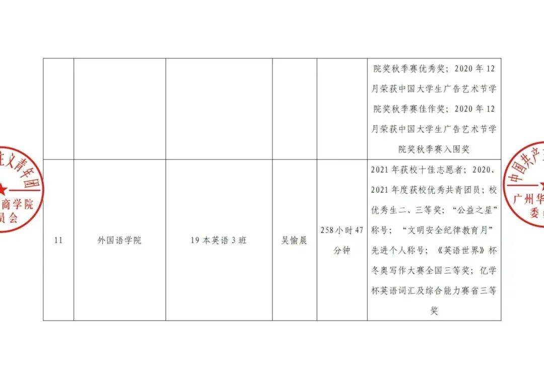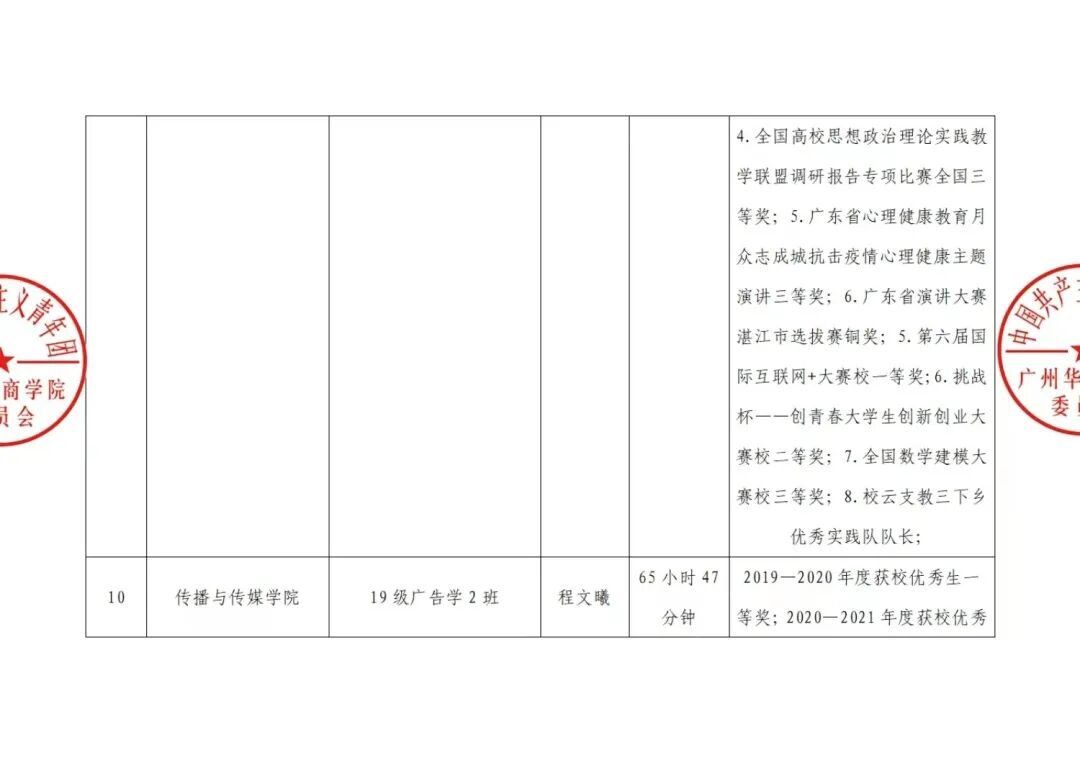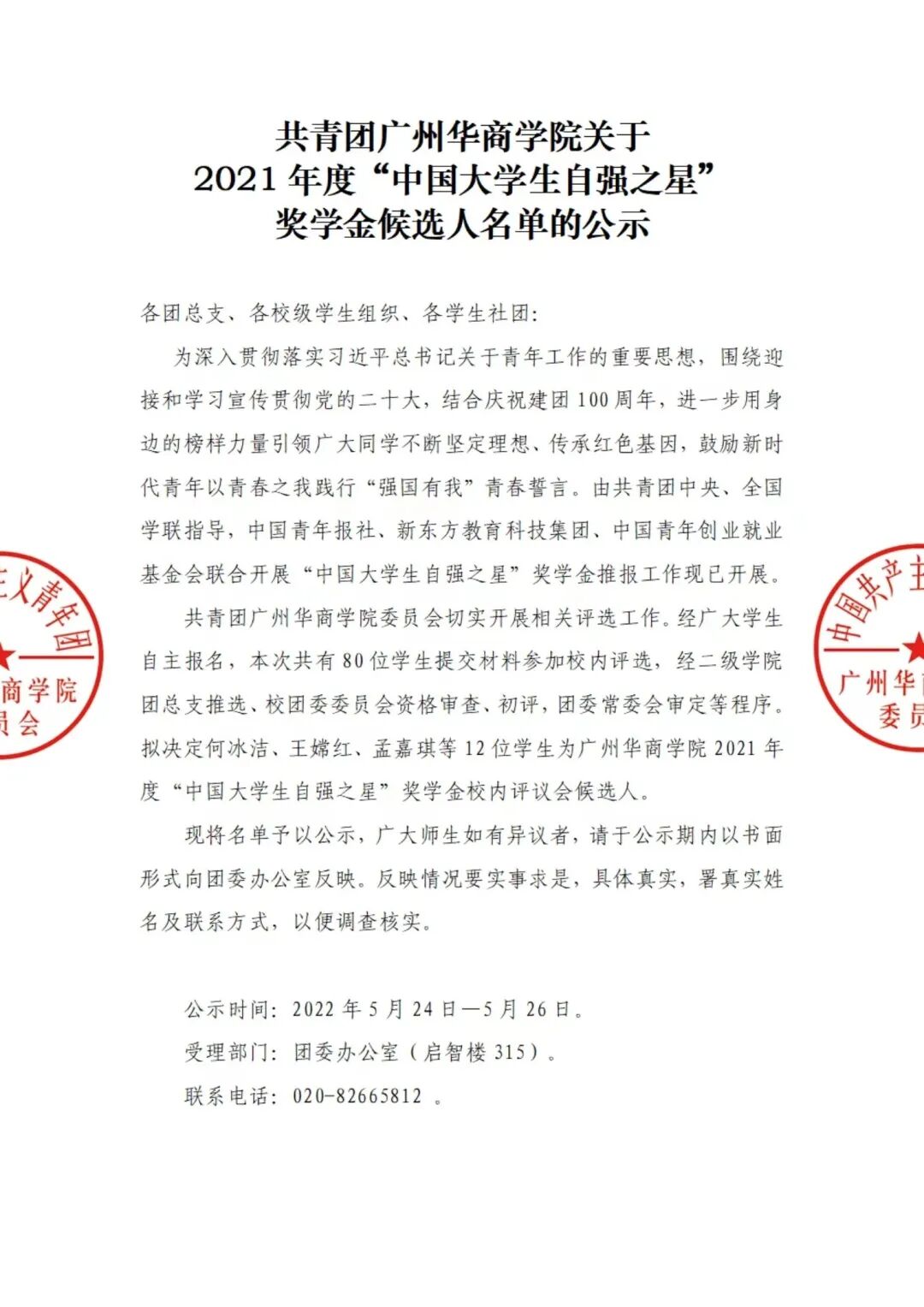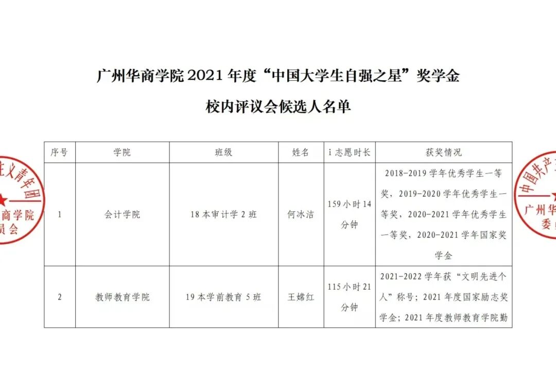 广州华商学院2021年度“中国大学生自强之星”校级评审名单公示来啦!