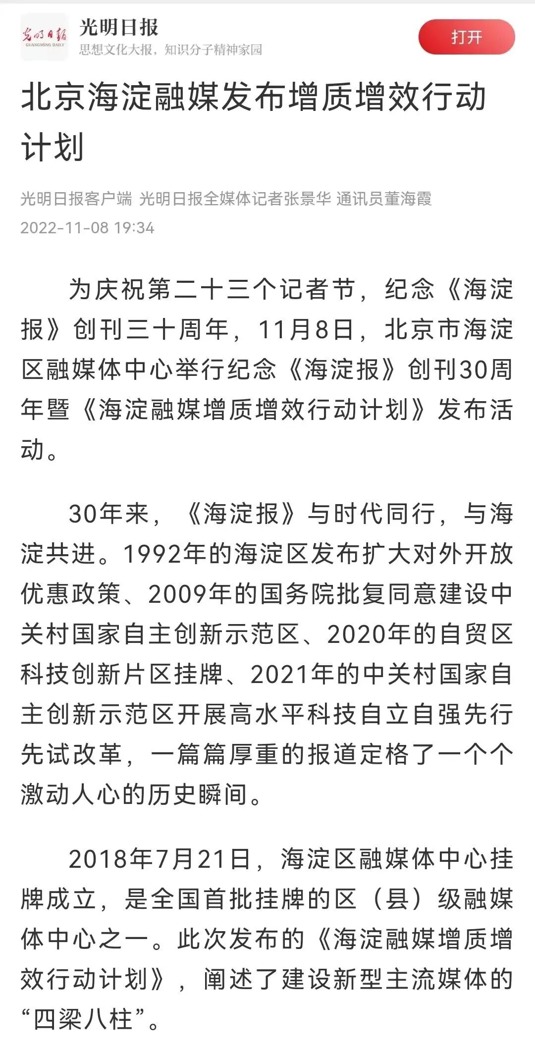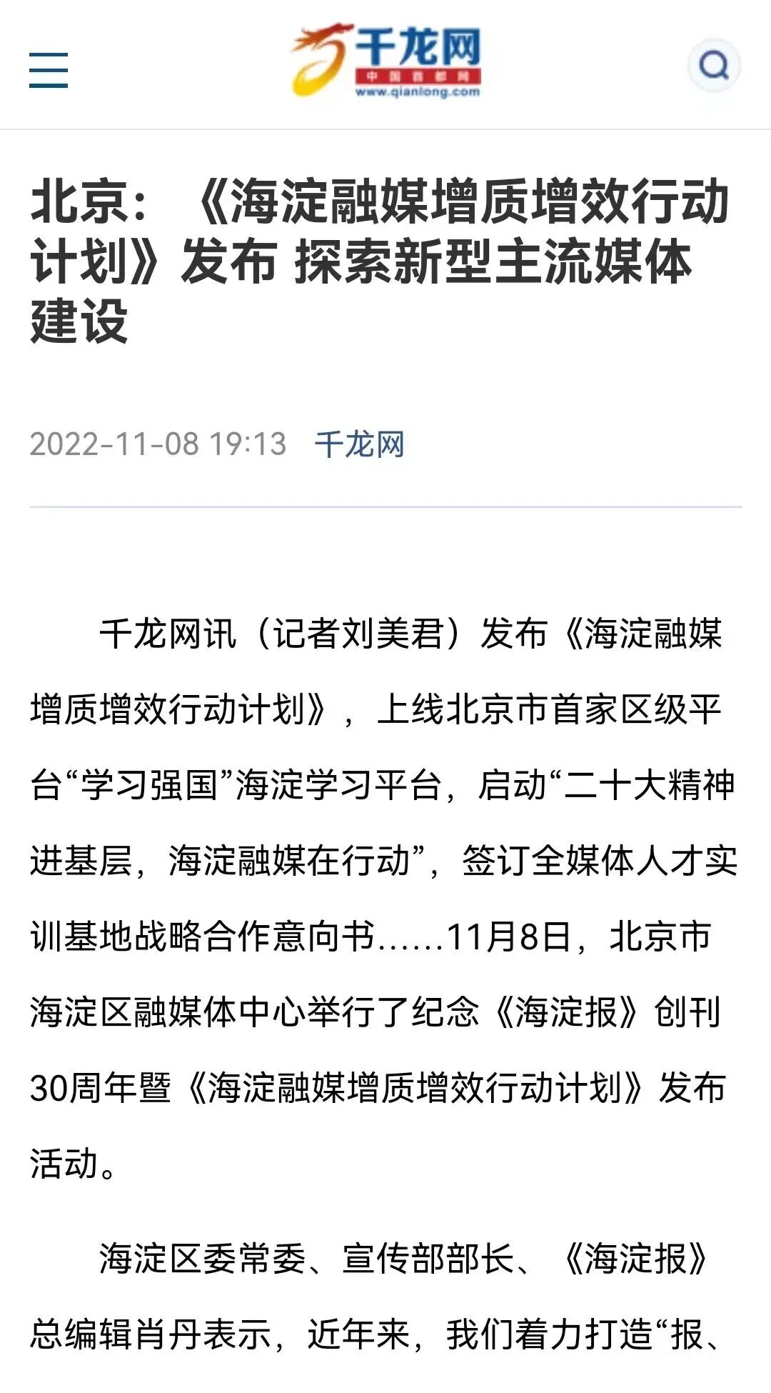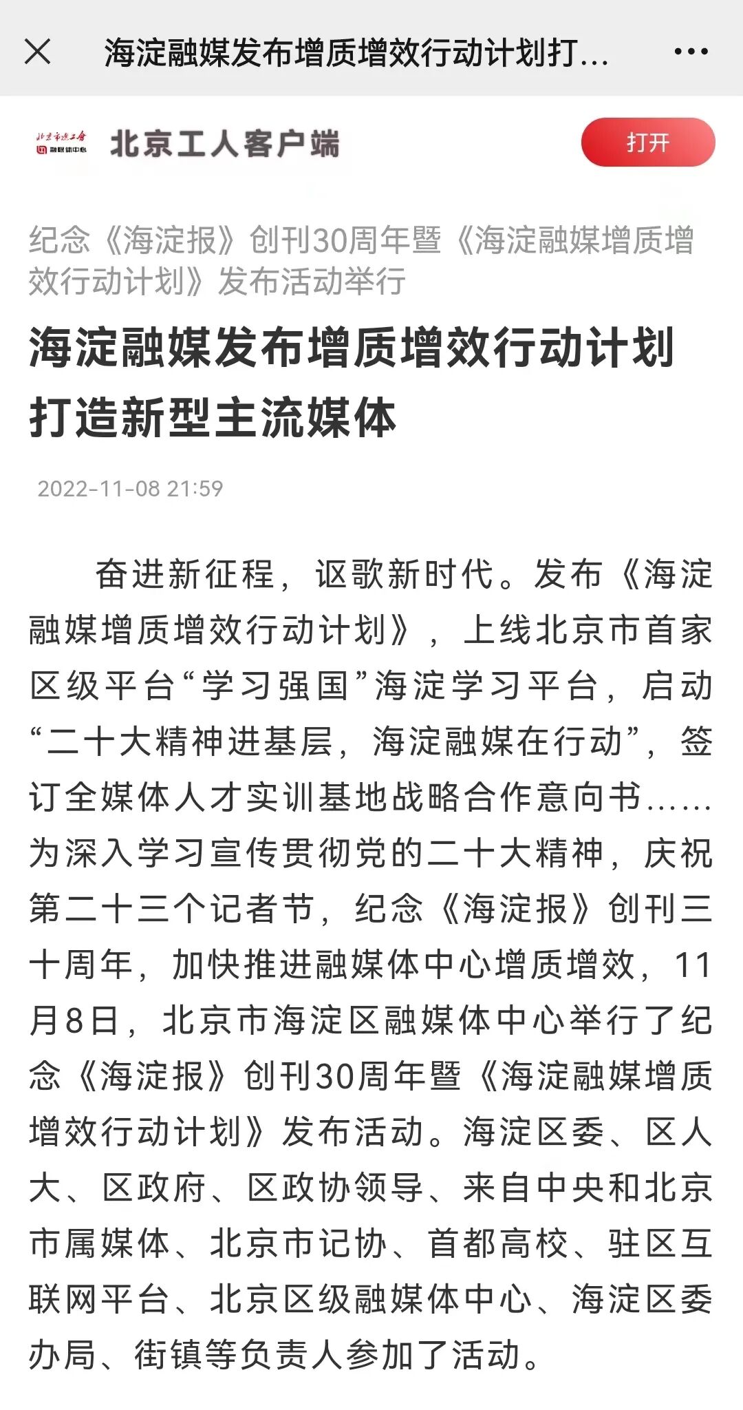 暨《海淀融媒增质增效行动计划》
