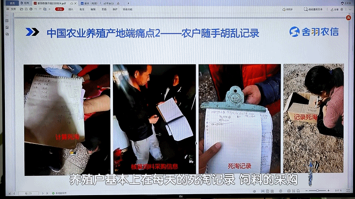 “中国农业目前所处的阶段,正在发生天翻地覆的变化,特别是养殖板块,家禽、肉牛、肉羊、渔产等品类养殖都存在极度分散、成本不可控、低效、非标、食品安全无法追溯等诸多痛点。”舍羽科技创始人王政玺告诉记者,目前养殖户在整个产业交易流程中是处于弱势的,上游的采购不透明,下游的销售能力弱、品控能力差。此外,养殖户每天的死淘记录、饲料的采购、数量的使用等都是随手去记录,没有任何的数字化留存以及信息化留存,最终导致融资效率低,这是中国目前农业养殖产业端的一个痛点。