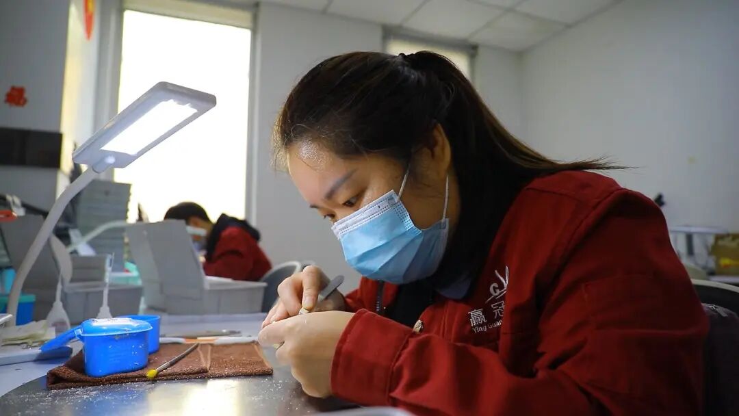 义齿俗称假牙,在过去,它的制作流程复杂,工序繁多,而如今,数字化技术的应用大大缩减了中间繁复环节,也减少了人为误差。义齿产品生产进入数字化智能制造阶段。走进赢冠口腔的生产车间,一条条精益的生产线、一台台先进的义齿数字化加工设备,正在有序运转。