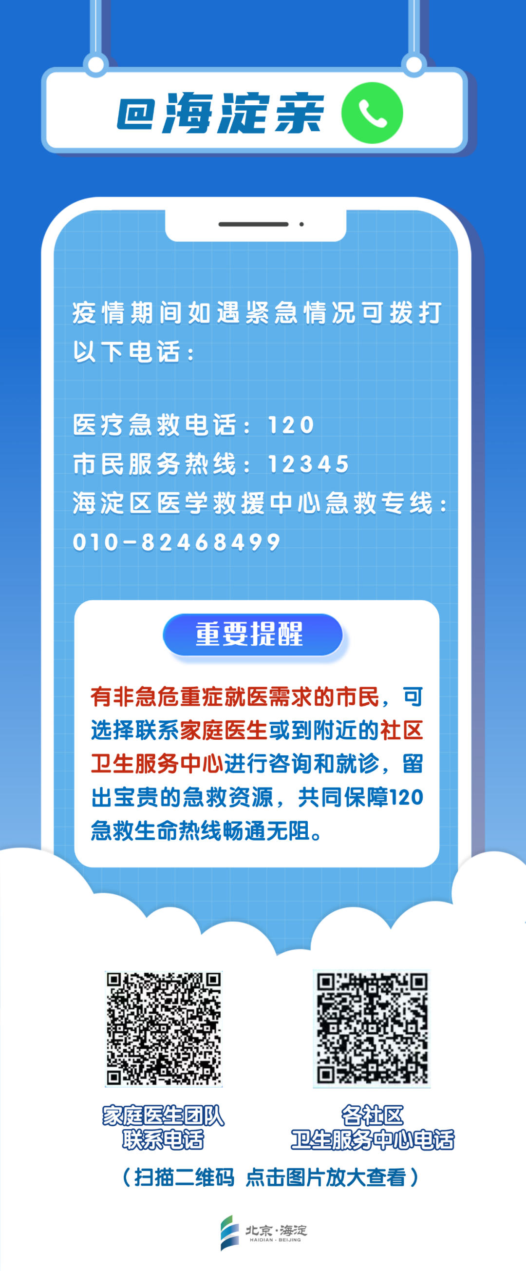 据了解,12月15日晚,海淀区决定集结医护人员,并安排海淀区南部和北部两家酒店作为海淀区院前急救集中驻地,对全区院前急救车组进行集中,以满足辖区居民需求。