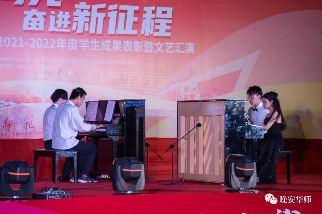 为了出色圆满地完成此次演出,节目策划组的师生进行反复讨论,大胆创新。校区艺术团负责人、基础教育学院小学教育专业2021级本科生权嘉欣表示,如何既融合地区特色,又设计出受师生们欢迎的节目,是当时策划考虑的重点问题。晚会的每一个节目都出自于师生的精心策划,如晚会舞蹈《朝阳龙魂》,是潮汕特色舞蹈英歌舞和现代街舞的有机融合,是对粤东传统文化的传承与创新;《步步高》是四位同学八手连弹钢琴,体现了汕尾校区重视培养学生的合作与创新能力;《起风了》是在原曲基础上,通过琵琶、架子鼓、钢琴、吉他等中西乐器结合创编出来的节目。![]()