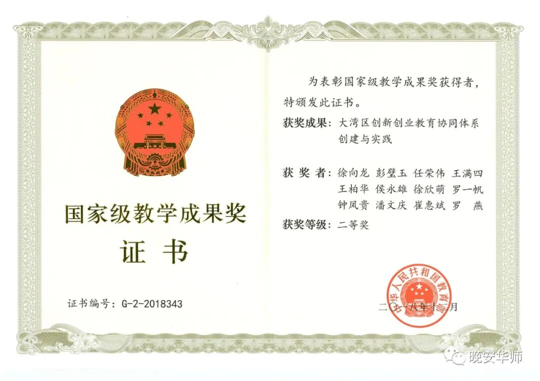 在清远、肇庆、番禺、梅州、汕尾布局成立了5个科技创新与成果转化平台。2018年,牵头联合中山大学、广州大学等申报《大湾区创新创业教育协同体系创建与实践》获国家教学成果二等奖。![]()