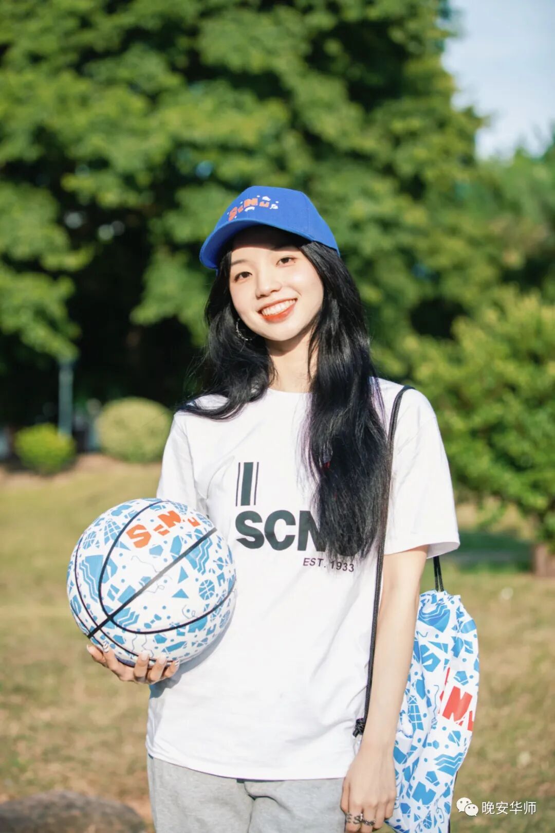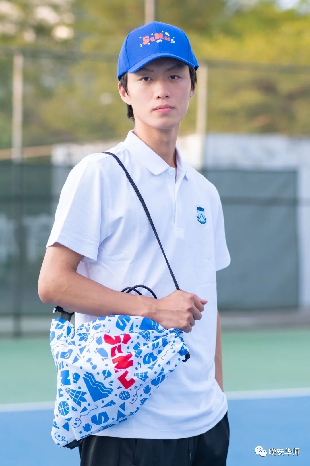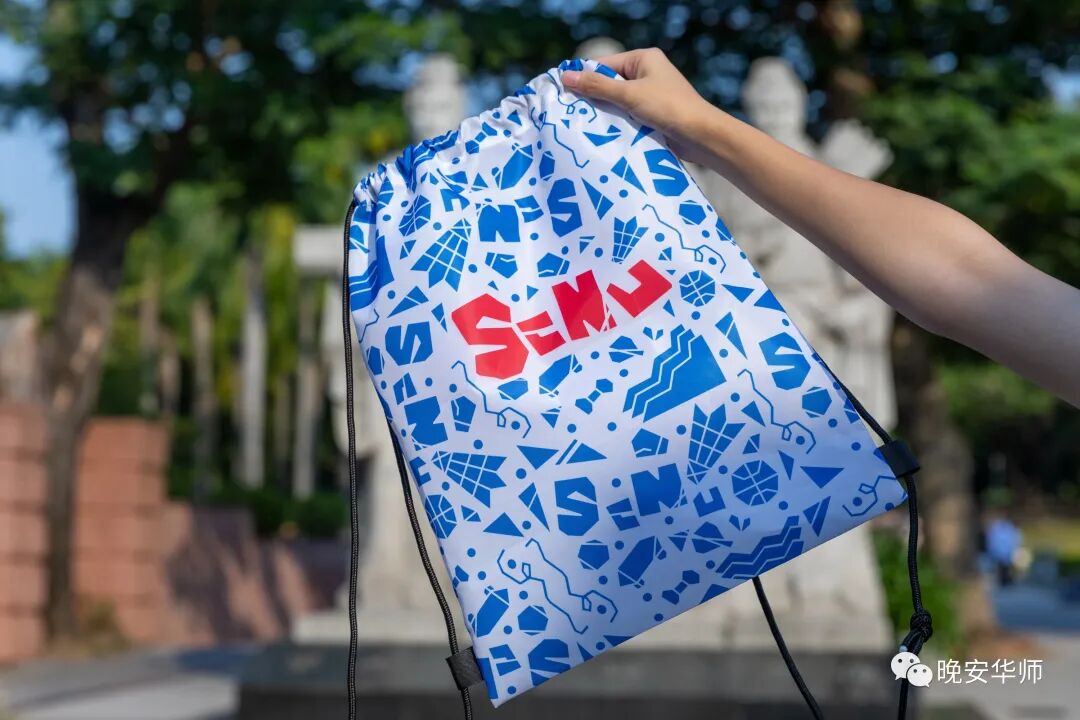 设计亮点:经典蓝、白、红配色,“SCNU”字母鲜明、抓人眼球