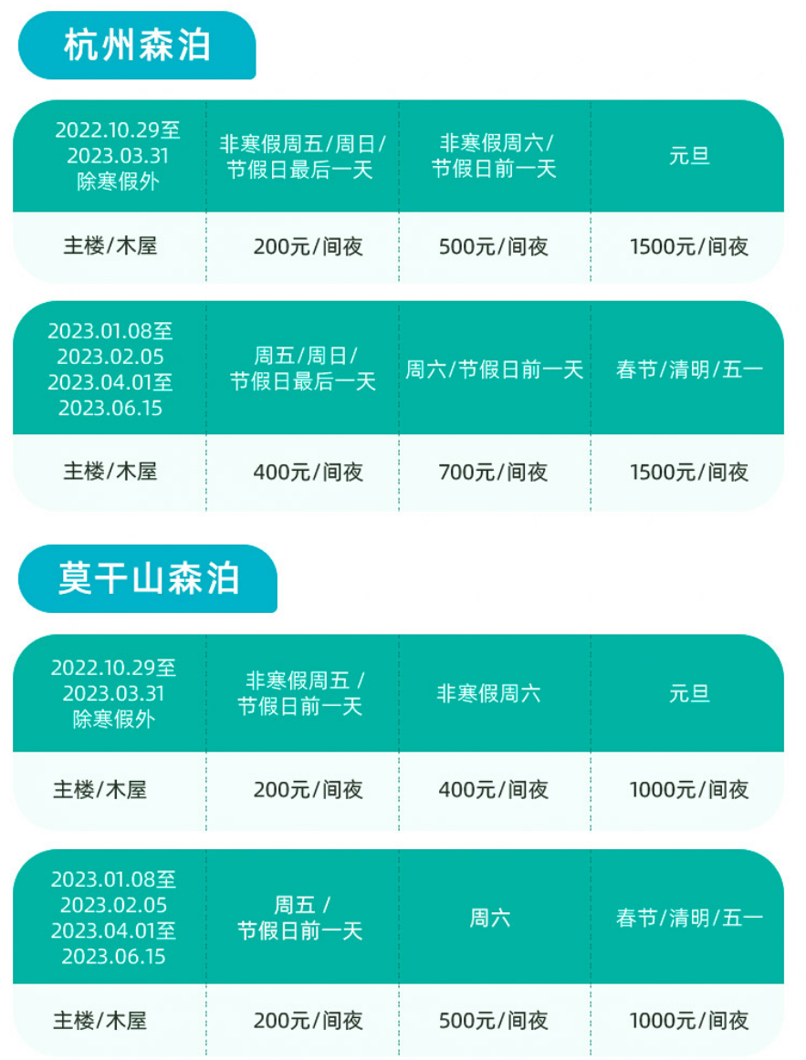 - 周五+100元/间/晚,周六+200元/间/晚,节假日加价可用