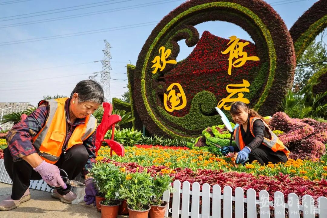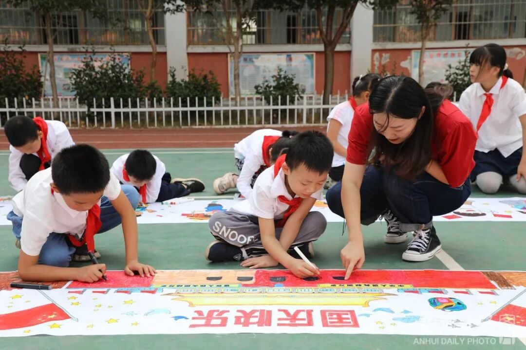 △合肥市政务中心门口的“大花篮”。(范柏文 摄)△国庆节前夕,阜阳市阜纺幼儿园举行升旗仪式。(高飞 摄)△9月29日,铜陵市义安区实验小学操场,学生们与国旗合影。(陈晨 摄)△9月28日,舒城县公安局五显派出所联合五显中心小学开展迎国庆活动。 (王可海 摄)△9月29日,巢湖市世纪新都小学开展“我和国旗合个影”活动。(马丰成 摄)△9月29日,国网宿州公司联合宿州市埇桥区西仙桥社区开展国庆新民俗活动。(方圣 何雪峰)△9月28日,合肥市少儿艺术学校开展“同唱国歌喜迎国庆”主题活动。(蒋娟娟 摄)△9月21日,六安市金安区阳光水岸幼稚园的小朋友们在表演舞蹈《中国范》,喜迎国庆节。(田凯平 摄)△9月29日,国网淮北供电公司员工在表演《我和我的祖国》歌舞。(王文 孙燕飞 摄)△9月29日,枞阳县会宫镇会宫中心学校学生在2条长20米的白卷上画画,欢庆国庆。(王章志 摄)![]()
