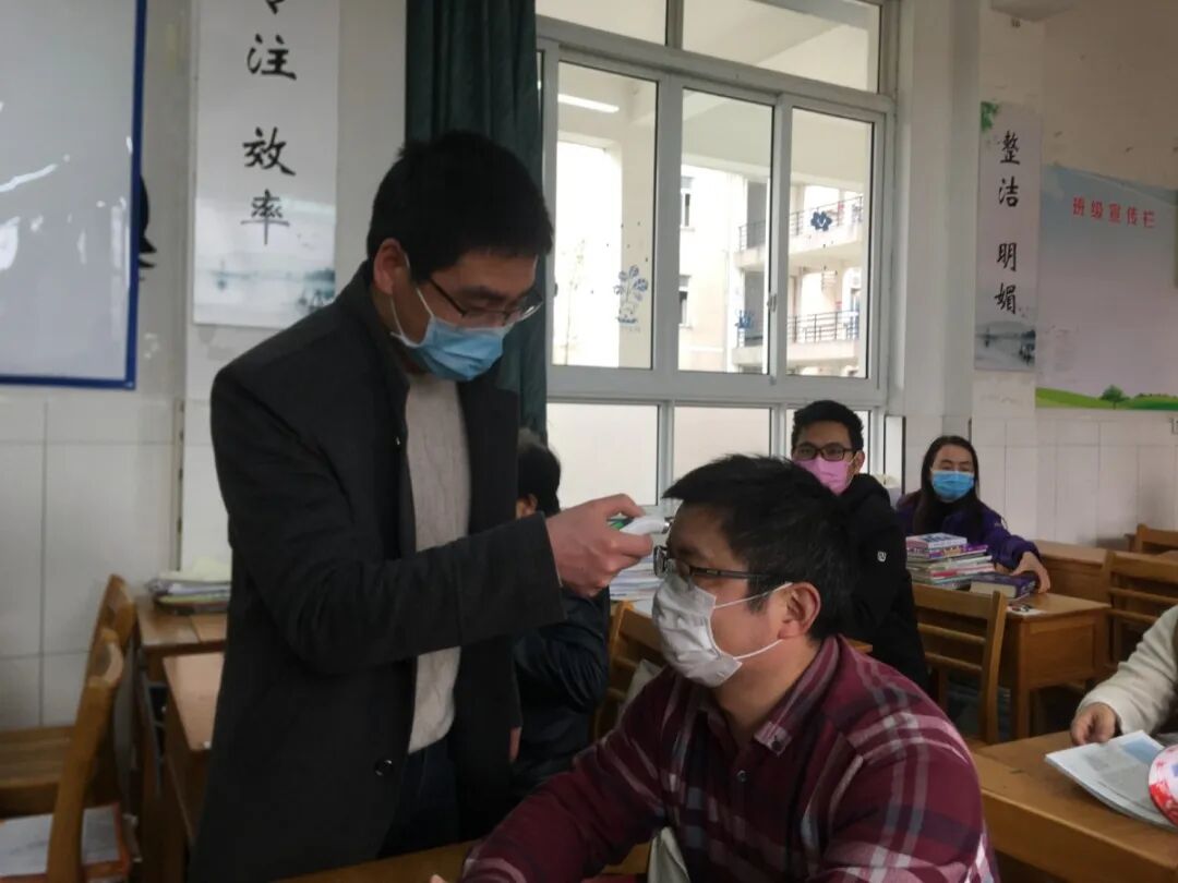 教室上课前,学生需戴好口罩,保持间距坐好,等候上课,由班主任教师和班级生活委员进行体温检测。教师授课时佩戴医用口罩。