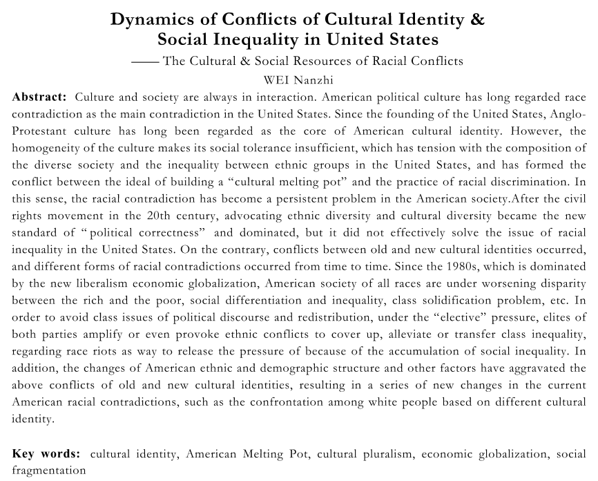 美国的文化认同冲突和社会不平等性