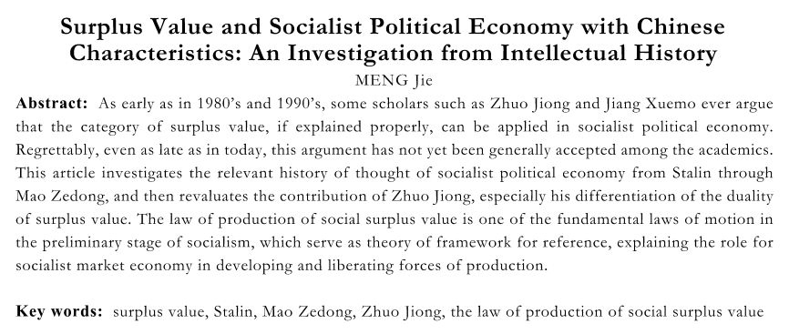 关键词:剩余劳动;斯大林;毛泽东;卓炯;社会剩余价值生产规律
