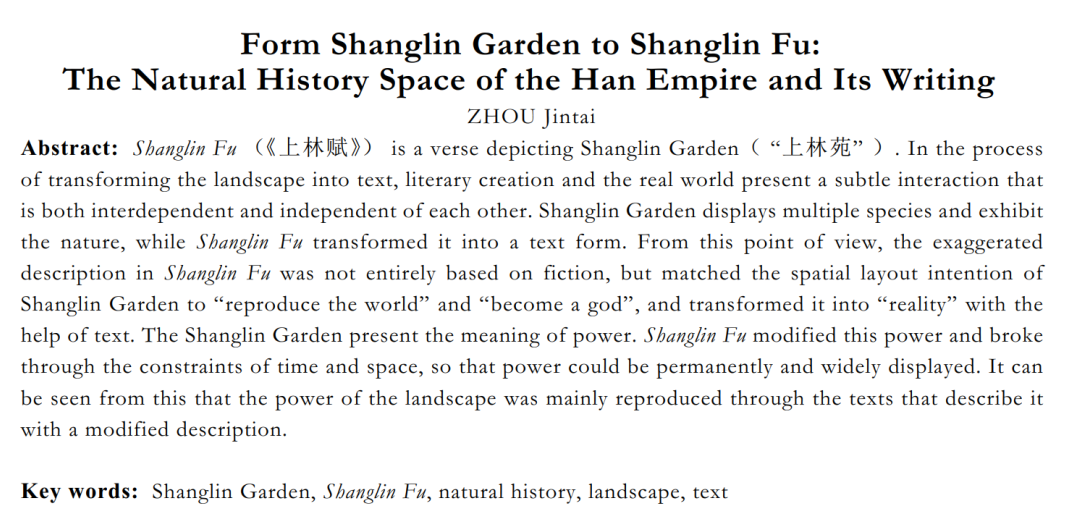 关键词:上林苑;《上林赋》;博物学;景观;文本