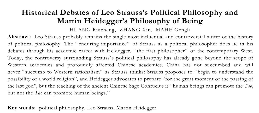 摘要:施特劳斯堪称20世纪西方“影响最大和最富争议的”政治哲学史家,作为政治哲人的施特劳斯的“持久重要性”,尤在于伴随其学术生涯始终的与当代西方“第一哲人”海德格尔的思想争辩。如今,围绕施特劳斯政治哲学的思想争议,早已超越西方学术范围深刻影响了中国学术。中国并没有也不会像施特劳斯所认为的那样“屈服于西方理性主义”:施特劳斯提议“开始理解一个世界宗教的可能性”,海德格尔则主张“为最后之神掠过的伟大时机作长久准备”,而中国古圣人孔子的教诲是“人能弘道,非道弘人”。