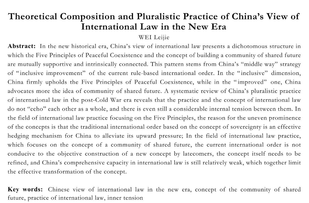 关键词:新时代中国国际法观;人类命运共同体理念;国际法实践;内在张力