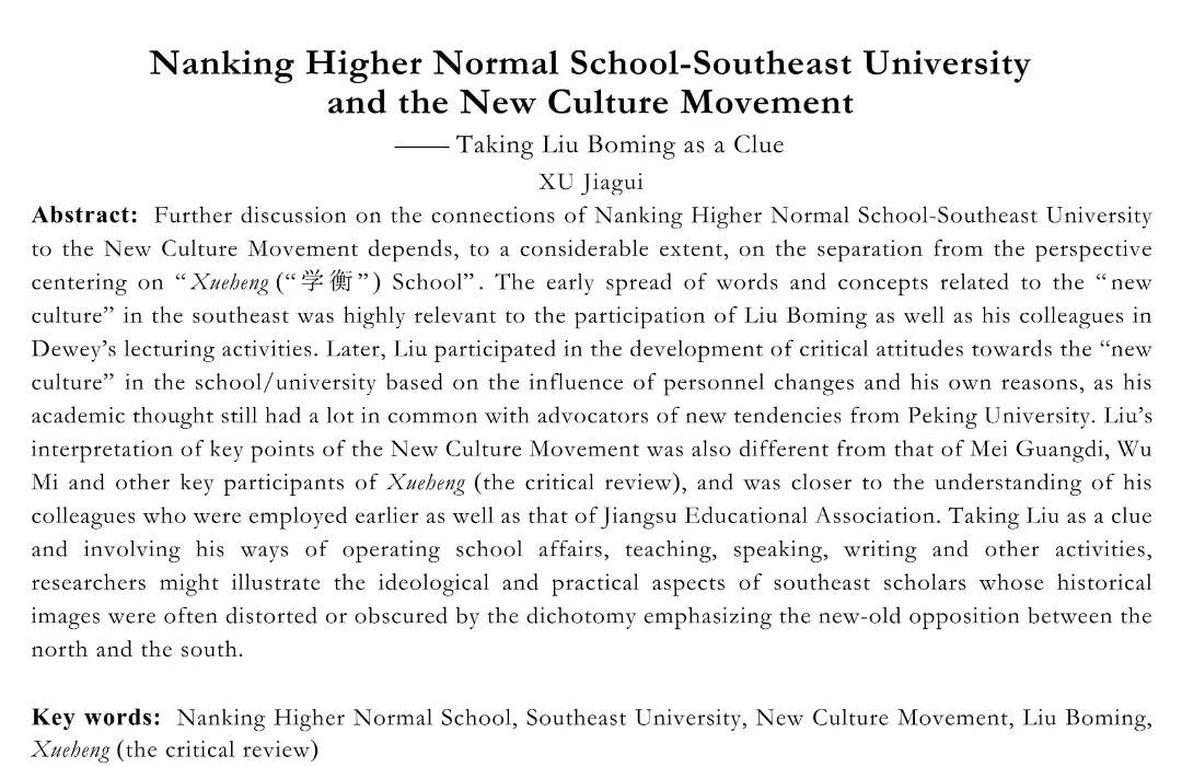 关键词:南京高等师范;东南大学;新文化运动;刘伯明;《学衡》