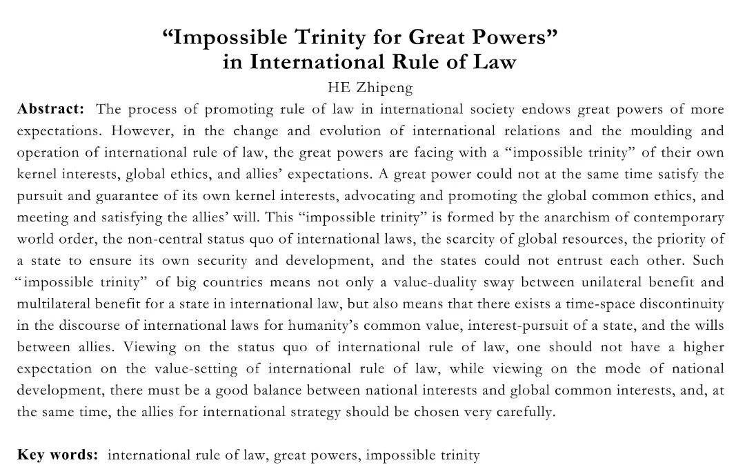 关键词:国际法治;大国;不可能三角