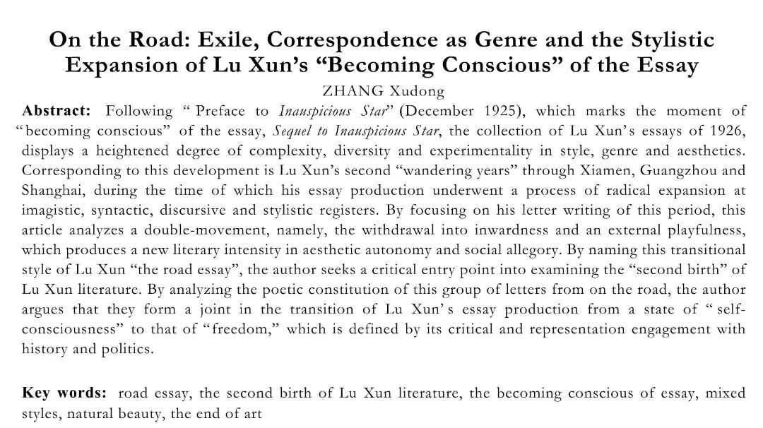 关键词:“路上杂文”;“鲁迅文学的第二次诞生”;杂文的自觉;文体混合;自然美;“艺术的终结”