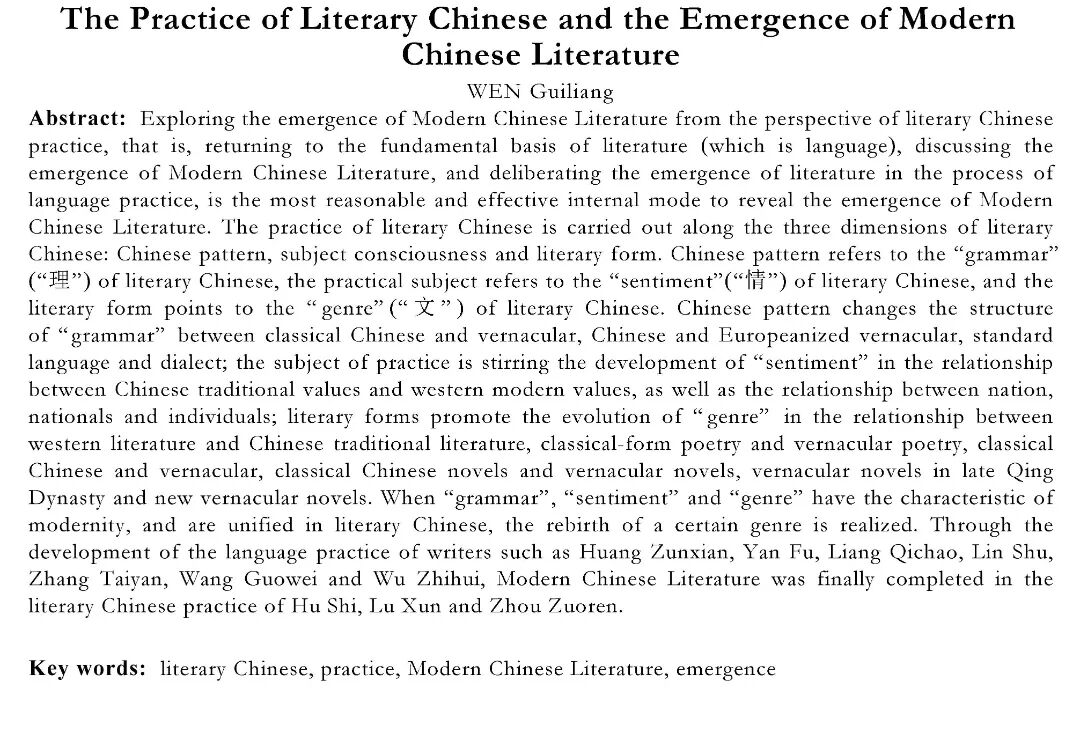 摘要:从文学汉语实践的角度探讨中国现代文学发生,即回到文学的根本基础(语言)上探讨中国现代文学的发生,把文学的发生置于语言的实践过程中思考,是最能合理且最为有效地揭示出中国现代文学发生的内部方式。文学汉语实践沿着文学汉语的汉语造型、主体意识和文学形式这三个维度展开。汉语造型指向文学汉语的“理”,实践主体指向文学汉语的“情”,文学形式指向文学汉语的“文”。汉语造型在文言与白话、汉语与欧化、标准语与方言之间改变着“理”的结构;实践主体在中国传统价值与西方现代价值以及国家、国民与个体的关系中激荡着“情”的发展;文学形式在西方文类与中国传统文类、旧体诗与新白话诗、文言文与白话文、文言小说与白话小说、晚清白话小说与新白话小说等关系中推动着“文”的演变。当“理”为现代之“理”,“情”为现代之“情”,“文”为现代之“文”,并且三者统一于文学汉语时,则实现了某种文类的新生。经过黄遵宪、严复、梁启超、林纾、章太炎、王国维和吴稚晖等作家语言实践的开拓,中国现代文学最终在胡适、鲁迅和周作人等的文学汉语实践中发生并完成。