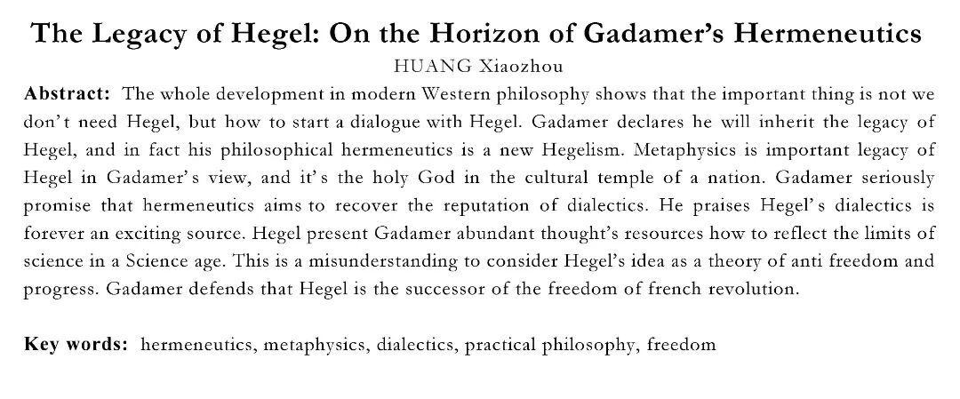 关键词:解释学;形而上学;辩证法;实践哲学;自由