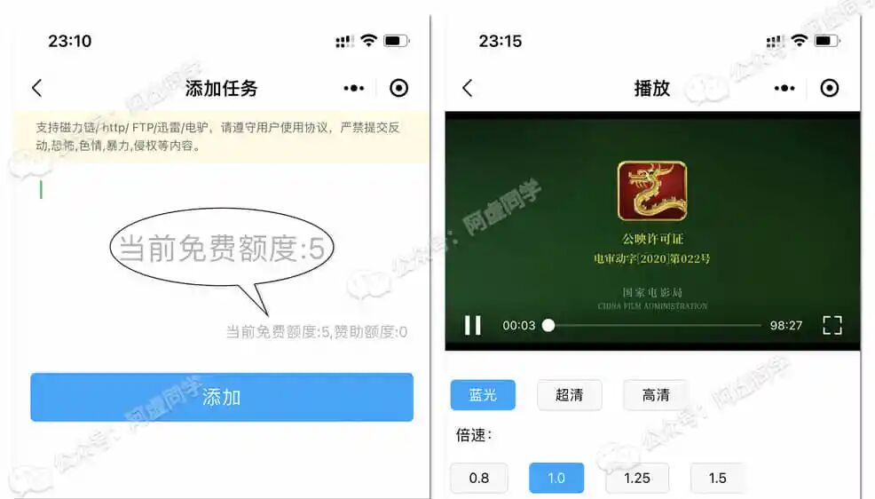 不过阿虚简单测试看来,目前应该是每天有5次离线下载额度,并且不会屏蔽敏感资源