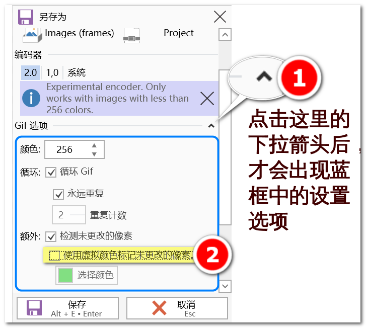 如果保存为 GIF,建议选择 2.0 编码器,画质和大小都比较好。