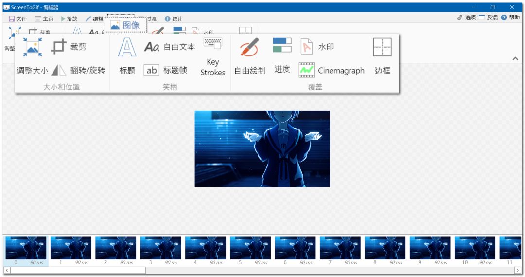 在上面三个功能任意一个录制完之后,都会默认自动打开编辑器并导入刚刚录制的GIF。