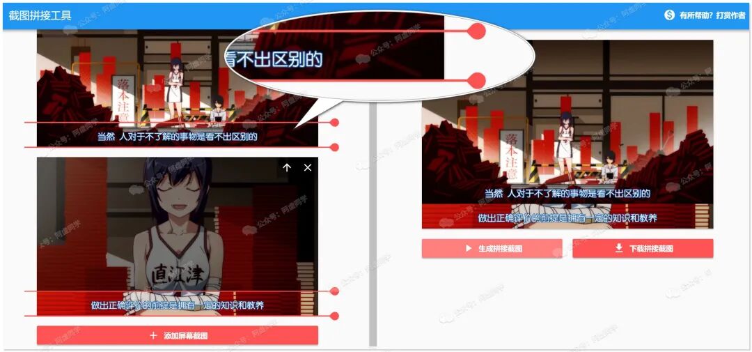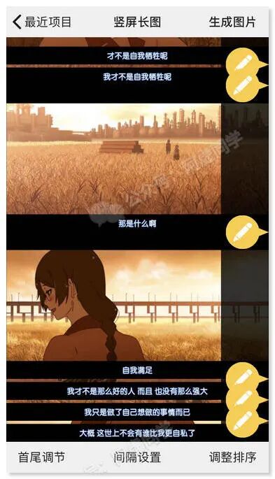 针对带歌词一类的台词截图,用PPIICC的长截图(手动纵向)模式则能很好的解决!